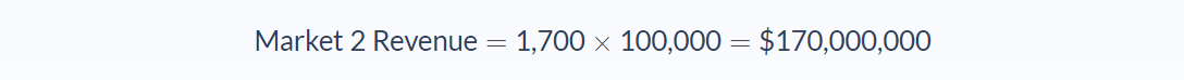 Example 2: A computer company manufactures and sells computers in three different markets. In 2019 they sold 150,000 computers in market 1 at an average price of $1,500 each. In market 2, they sold 100,000 computers at an average price of $1,700. In market 3, they sold 80,000 computers at an average rate of $2,000.