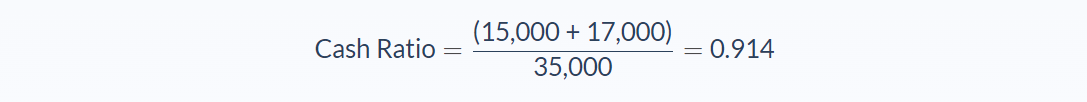 The cash ratio gives you a stricter and more conservative measure of a company’s liquidity. For example, if a company’s cash ratio is less than 0.5, it is generally in a state of immediate financial difficulty.