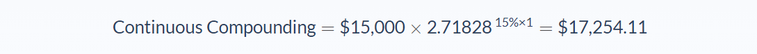 This formula determines the interest that is earned on an amount by constantly compounding it to a theoretically infinite amount of compounding periods. Put simply, it takes compounding to the furthest theoretical limit.
