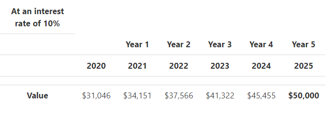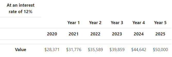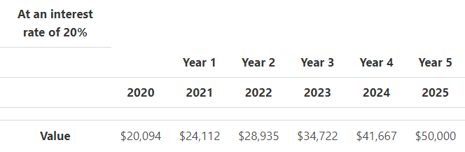 - Thus, James will have to choose from the below investments in 2020 at different rates, if he wants a return of $50,000 yield in five years