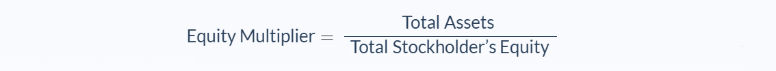 The formula for equity multiplier is total assets divided by stockholder's equity.