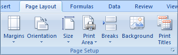 Note the Print Area button in the Page Setup group. If you have a worksheet that has multiple components to it and you wish to print those components separately, you can define specific areas or cell ranges of the worksheet to be printed, ignoring the other areas.