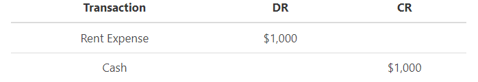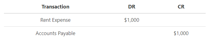 The company incurs Rent Expense of $1,000. The company pays the bill in the following month.