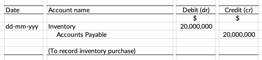 - Purchased Inventory costing $20 million on credit.