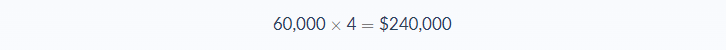 Accumulated depreciation to December 31st, 2019 (which is 4 years) would then be: