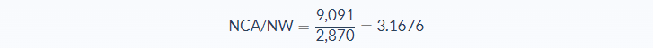 Now let’s use our formula and apply the values to our variables to calculate non-current assets to net worth ratio: