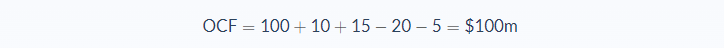 Operating Cash Flow = Net Income + Non-Cash Expenses - Change in Working Capital