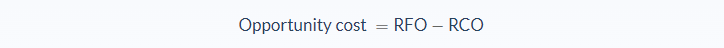 - Opportunity cost = Return on the next best Forsaken Option – Return on the Chosen Option