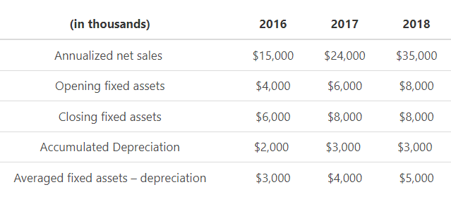 - This formula requires three variables: Annualized Net sales, average fixed assets, and the accumulated depreciation.