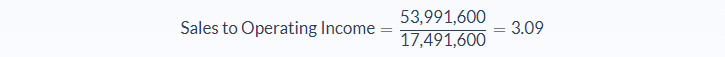 The sales to operating income ratio is 3.09. This means that the net sales is about three times the operating income. For every dollar made in operating income, 3 dollars were made in net sales.