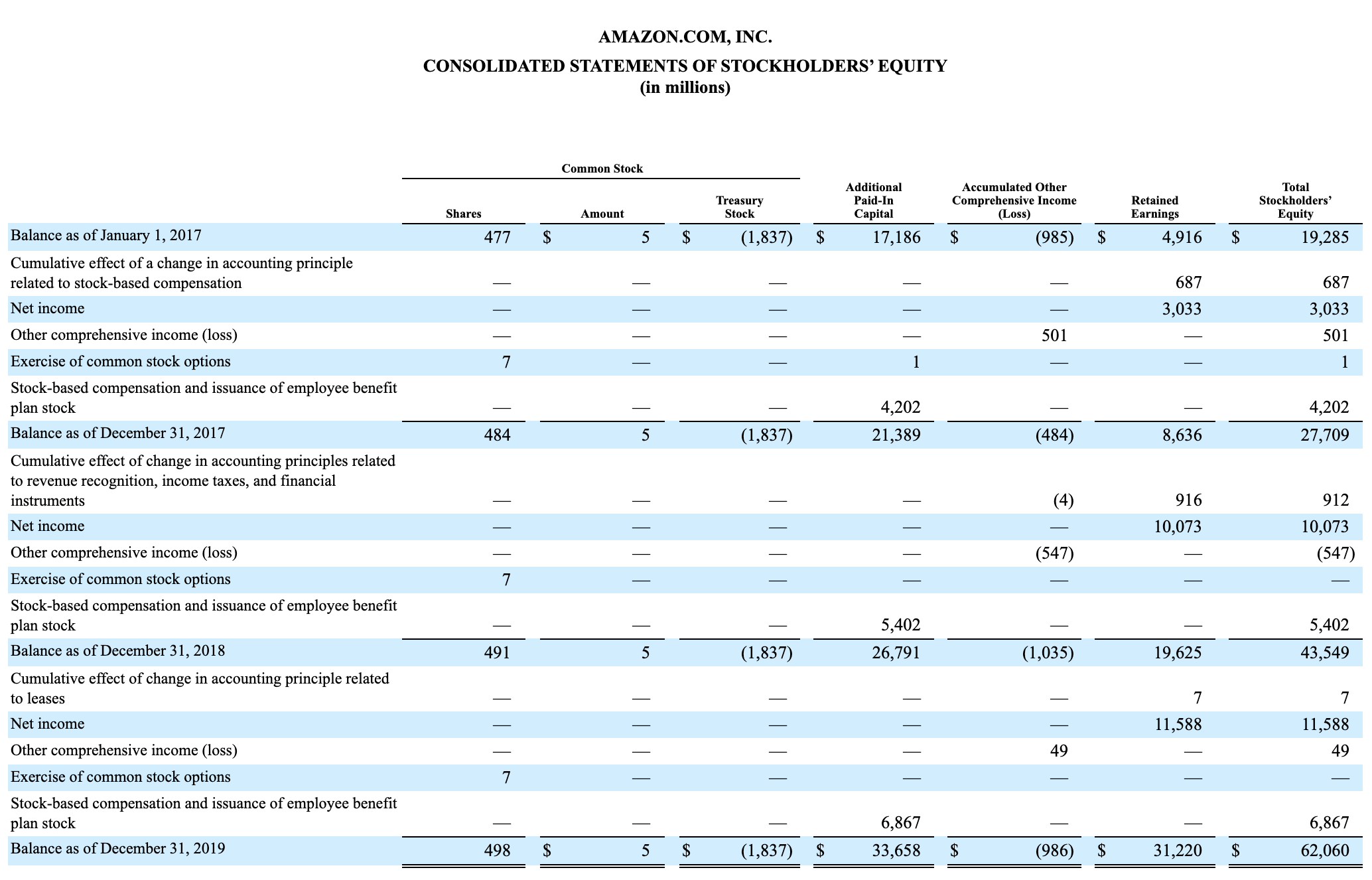 Below is an example of the statement of stockholders’ equity for Amazon: