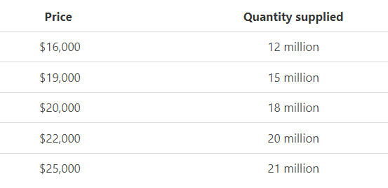 Example: The following table shows the number of hypothetical products XYZ limited supplied during a week, at different prices.