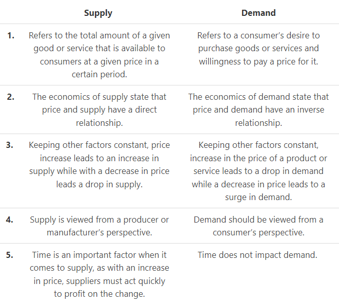 “Production or manufacture” is the process of converting raw materials into finished goods. These finished goods are then sold in the market to meet customer’s need and requirement. Supply apart from being just a number is a very important factor in determining the pricing of goods and/ or services. In this article, we will understand how a producer determines how much of a product are to be manufactured and supplied in a given period, the elements in the market which affect supply and the basic difference between the two major forces in economics, namely demand and supply.