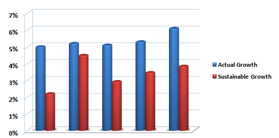 It’s clear from the previous example that actual growth is consistently above sustainable growth. What does that mean?